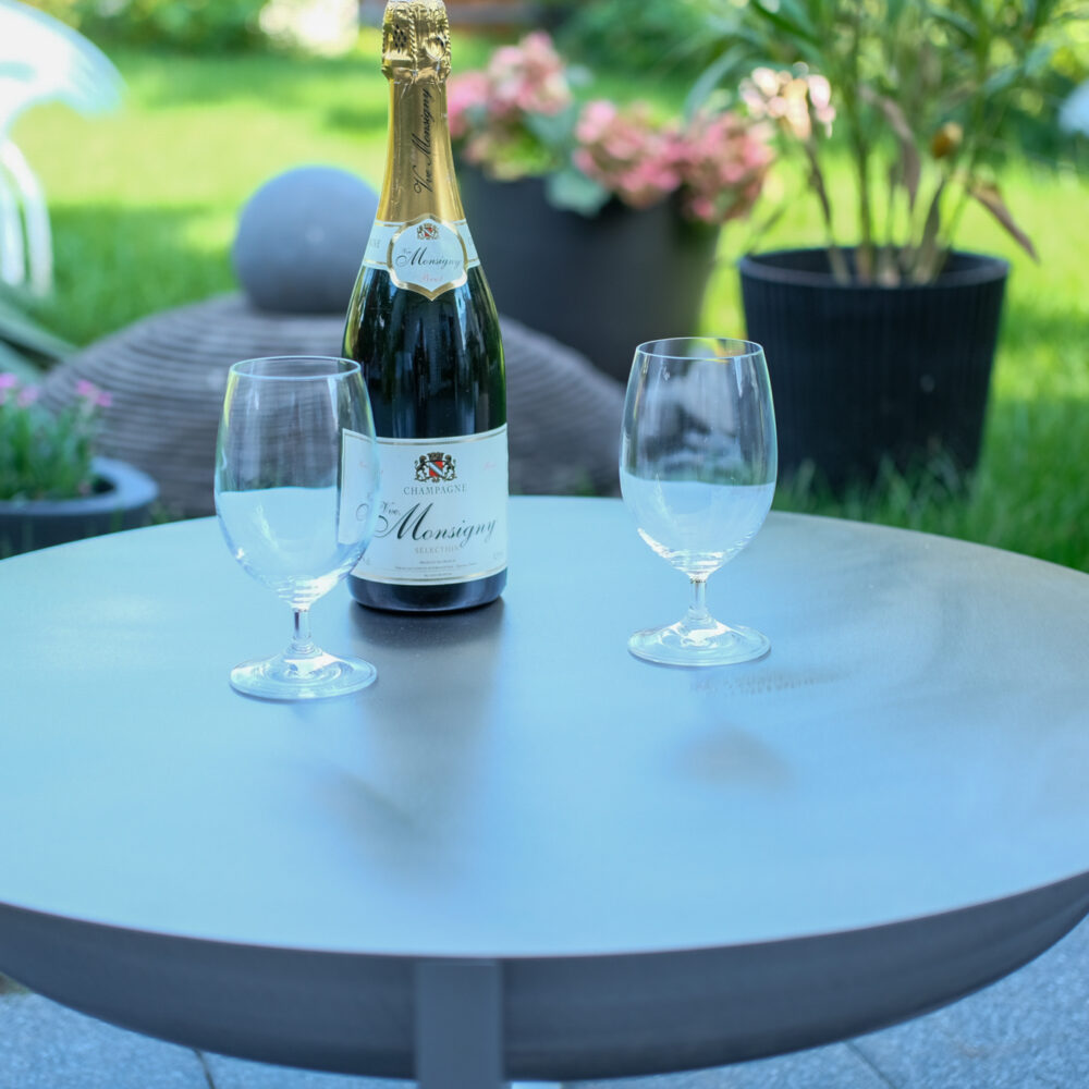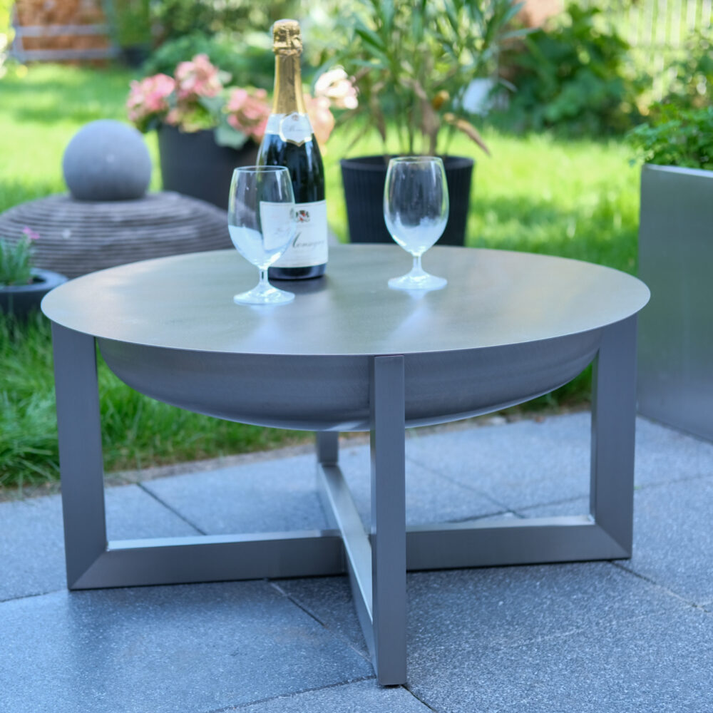 Und noch mehr: Verwandeln Sie Ihre elegante Feuerschale in einen Outdoor-Tisch der Extraklasse – platzsparend & ein absolutes Highlight für Ihre TerrasseI