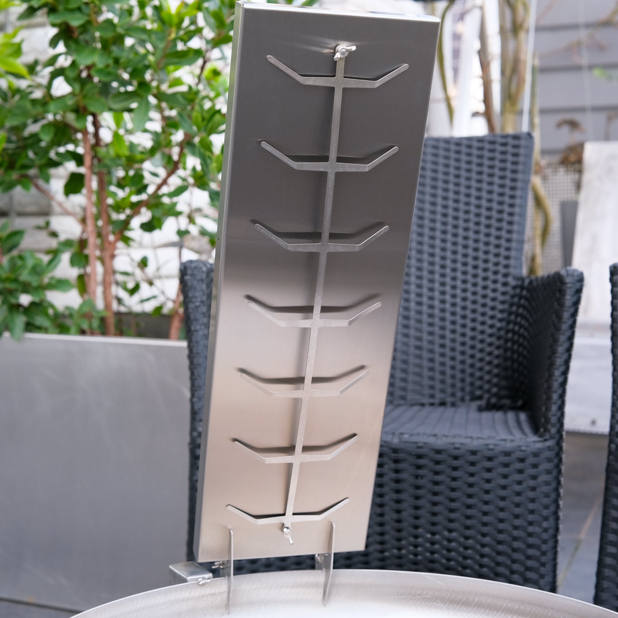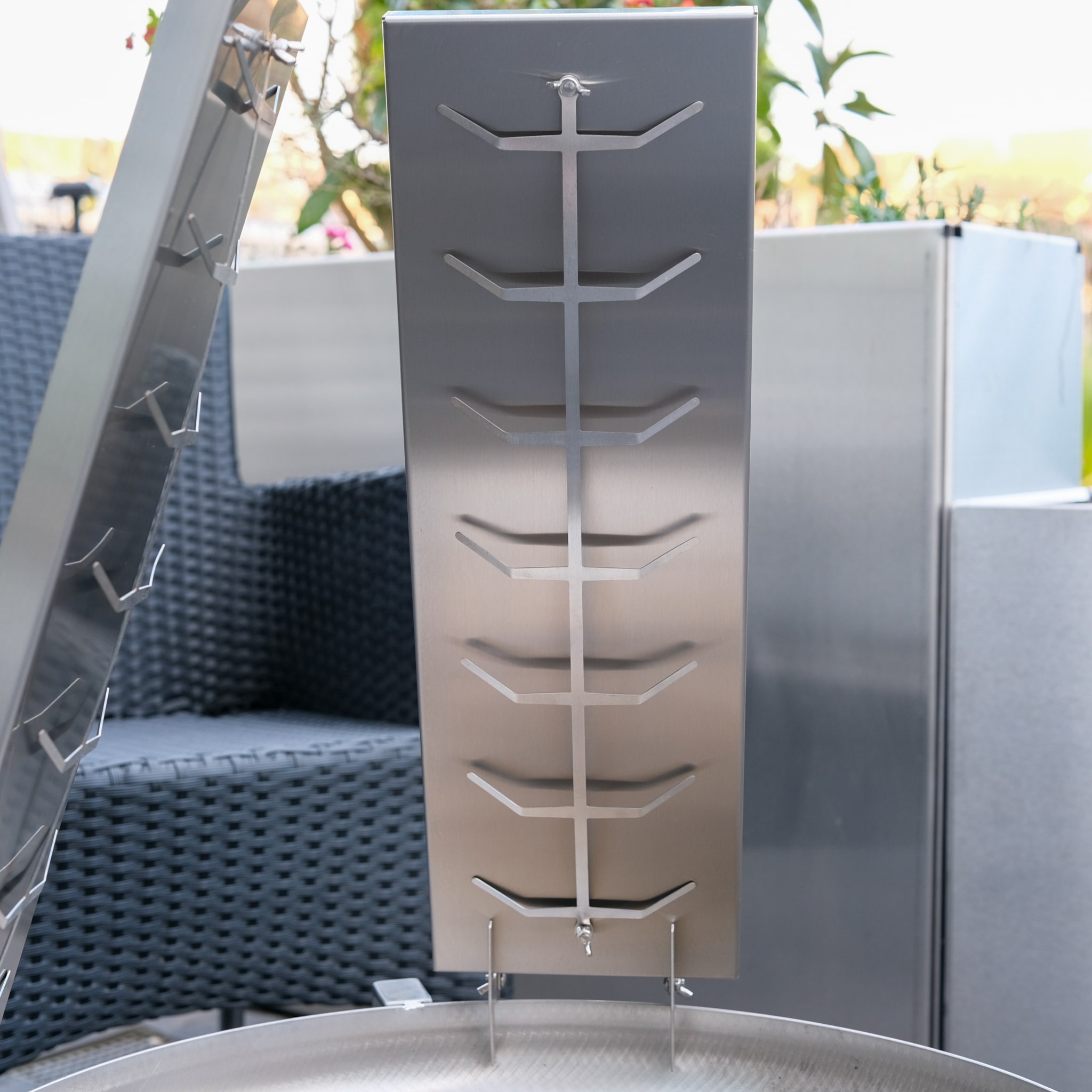 Die mehrstufig verstellbare Positionierung erlaubt es, den Abstand zur Flamme individuell anzupassen und die Hitzeeinwirkung präzise zu steuern. Die Flammlachsbretter werden dabei ohne Montage einfach aufgesteckt – sofort einsatzbereit.