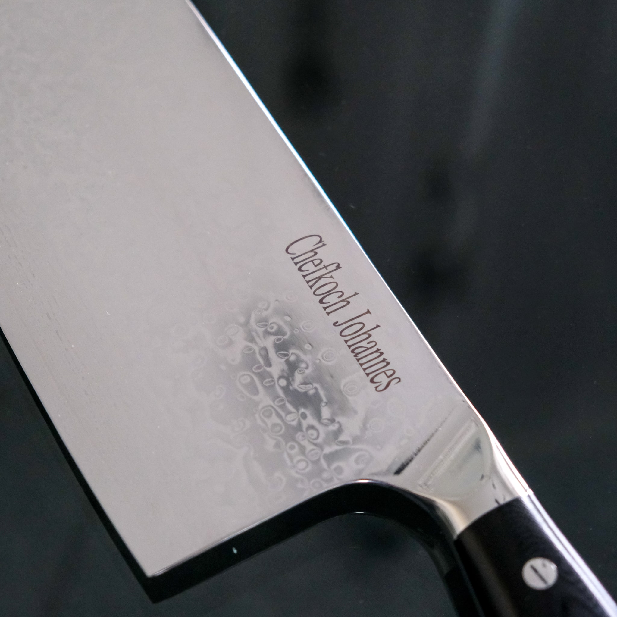 Durch die komplexe Anfertigung des Klingenstahls mit mehrlagigen Stahlschichten entsteht die brilliante Musterung des Damastmessers, welches das Messer zu einem absoluten Highlight macht und nochmal ein besonderes Gefühl aufleben lässt. Die Schmiedekunst zeigt sich detailreich an beiden Außenseiten der Klinge und verziert durchgängig das gesamte Messer. Eine geprägte Kunst, die von der aufwendigen Schmiedearbeit zeugt und das Messer so unvergleichlich macht.